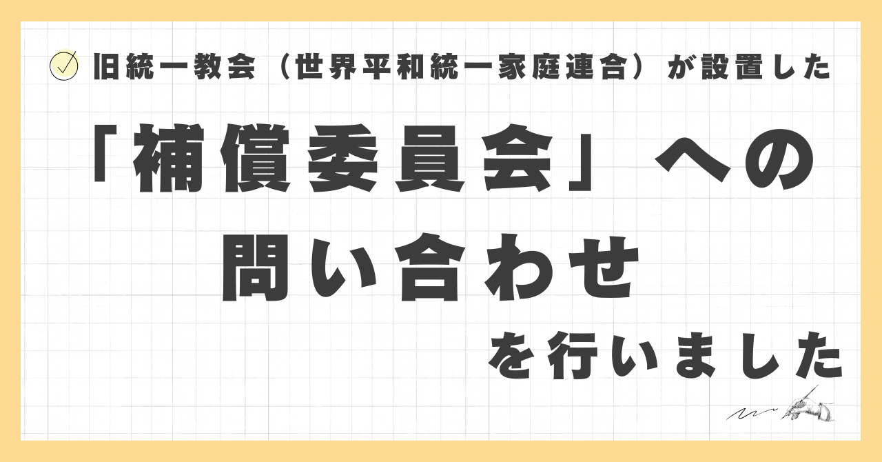 2025年10月29日、世界平和統一家庭連合(旧統一教会、以下「家庭連合」 )が設立を発表した「補償委員会」に対し、当事者として公開の質問をすることにしました。